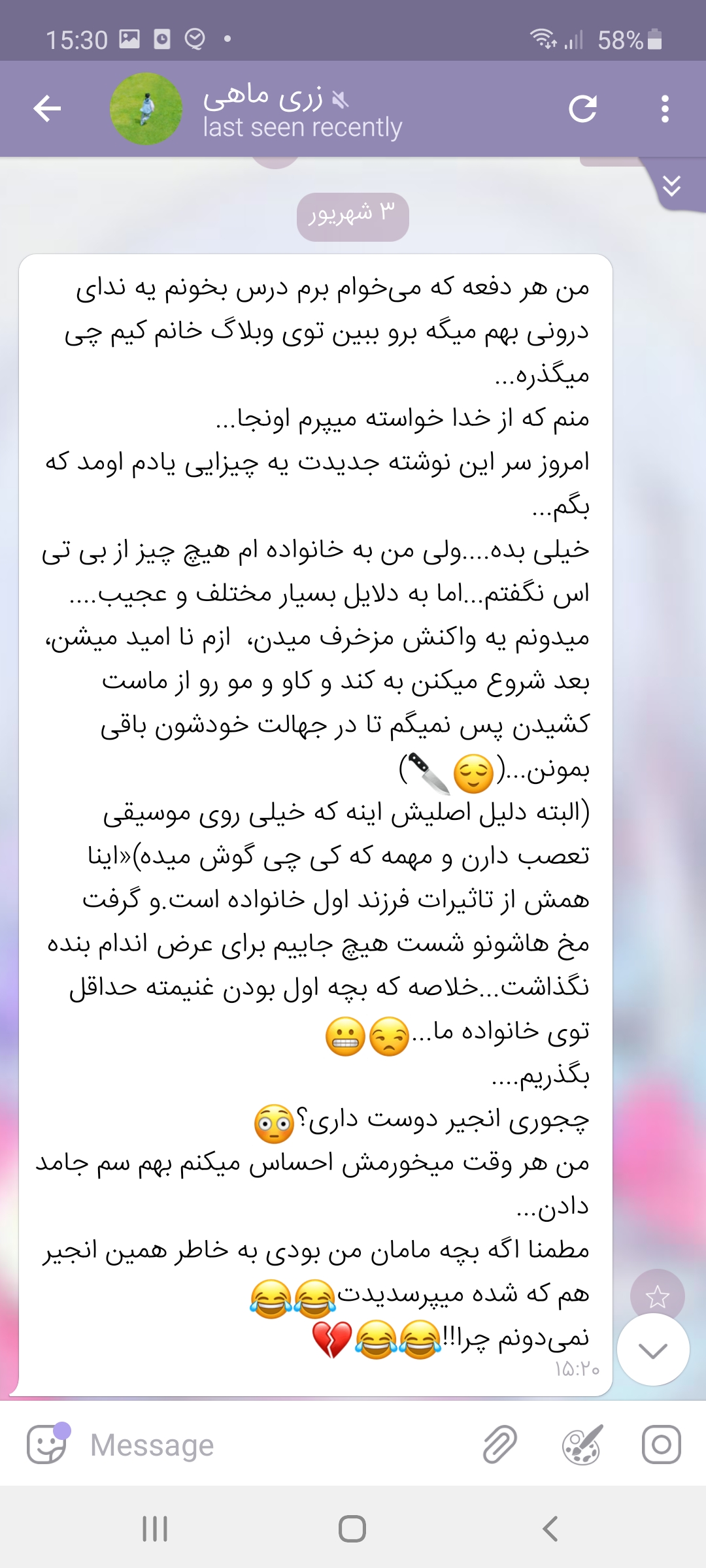 یکی از دلایلی که اصلا دلم نمیخواد دیروز رو جز روز های زندگیم به حساب بیارم علاوه بر فوق مزخرف بودنش و گریه های اعصاب خوردکنی که تحویل خودم و خانوادم دادم،