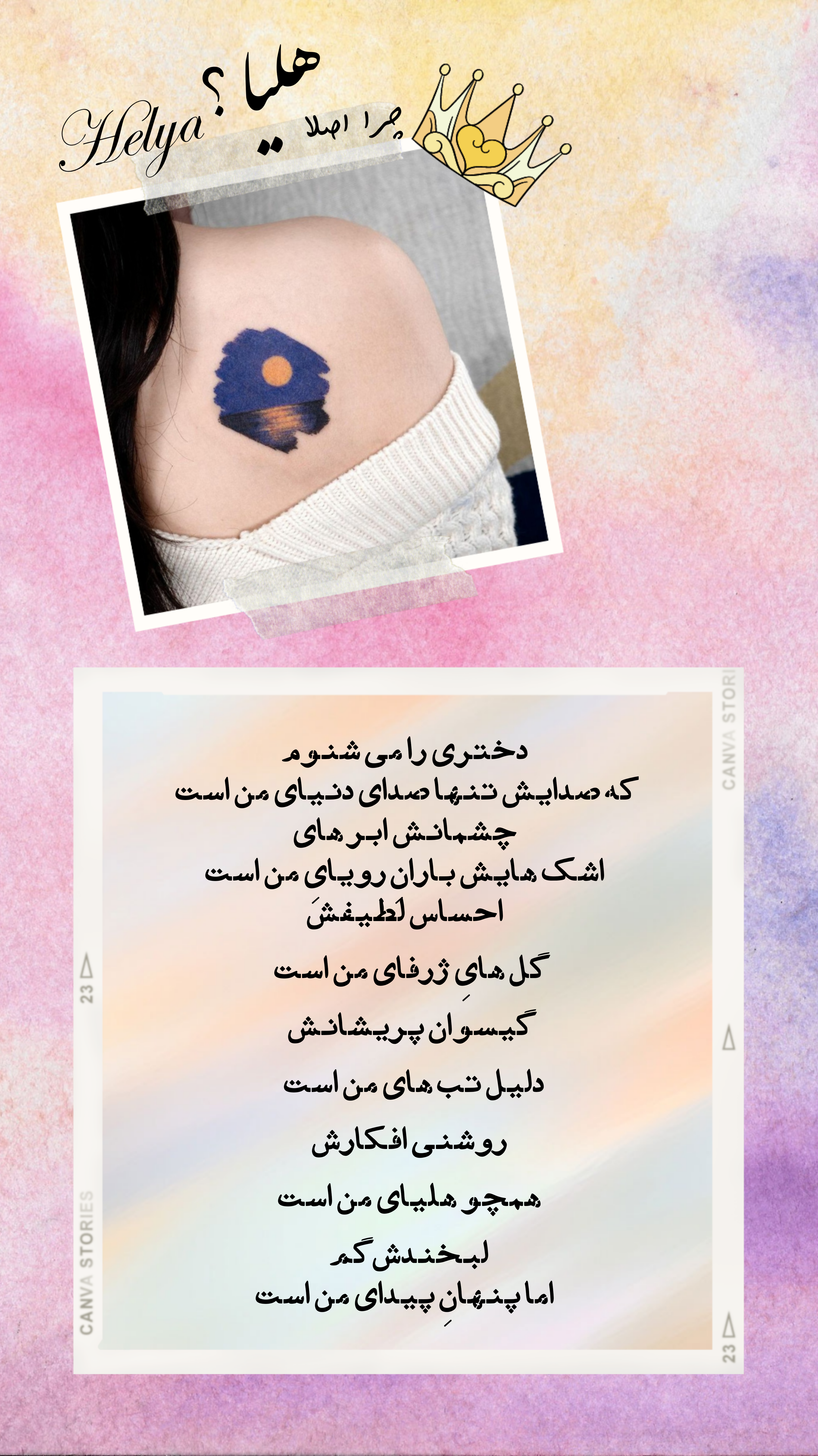 مامانم می گفت اسم منو سال ها پیش از توی یه مجله پیدا کرده. همونجا به دلش نشسته و همونجا مطمئن شده من هلیا میشم. اما اون زمان ثبت احوال شهرمون اسم هلیا رو قبول نمیکردن، انگار از قبل هیچ وقت نداشتن یا چی، که در نهایت با پا در میونی خاله ی مامانم که مشهد زندگی میکنه و دخالت ثبت احوال مشهد، تونستن بهشون بقبولونن که این اسم مجازه و مامانم تا آخرین لحظه کوتاه نیومده و اینجوری شد که من هلیا شدم. جالبه اینم بدونین که بابام میخواسته اسممو ریحانه بذاره، اگه مامانم هرگز اون مجله رو نمی خوند شاید الان ریحانه بودم. توی شهرمون فعلا هیچ هلیایی نیست که بزرگتر از من باشه، هر چی هلیا هست از من کوچیکترن. شاید براتون سوال پیش بیاد که اینا رو از کجا میدونم و اصلا چجوری اینقدر مطمئنم؟! خب چون شهرمون کوچیکه. اونقدر کوچیک که شاید بتونم هلیا های توشو بشمرم. اما با اون وضعیت نچسب ثبت احوال، احتمالا خانواده ی من راه رو برای بقیه ی هلیا ها - حداقل توی شهر خودمون - هموار کردن...